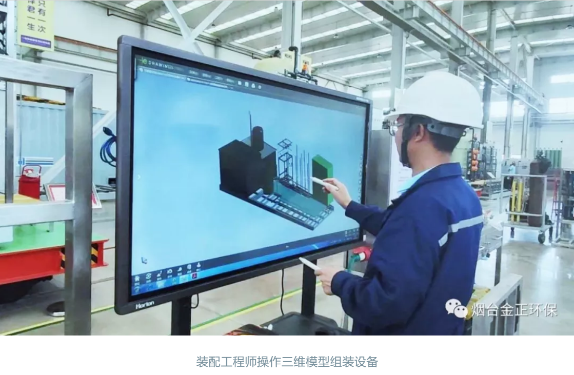 自動化生產線制造出的DTRO膜組件,隨后將運往膜設備裝配車間進行組裝。在這個現代化裝配車間,看不到一張圖紙,裝配工程師完全憑借電腦屏幕上顯示的三維模型來組裝設備。這是公司自主研發的設備智能組裝管理系統,創新打造的無紙化、可視化、智能化的裝配場景和“搭積木”式裝配流程,其操作簡單直觀,數據傳遞及時,溝通高效準確,有效提高了設備標準化組裝精度,大幅縮短了生產周期,實現技術、設計、生產、計劃等部門的協同管理。