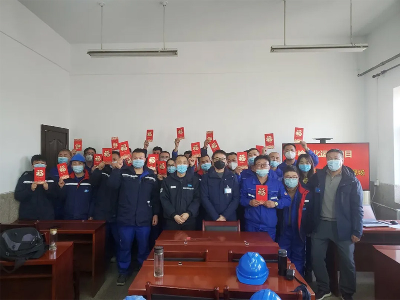 “堅(jiān)守在一線的你們辛苦了!祝大家新春快樂(lè)!”2月8日,公司101會(huì)議室溫暖如春,一句句暖心的問(wèn)候和祝福,穿越千山萬(wàn)水,隔空傳遞著。受疫情影響,為減少人員流動(dòng),公司總裁李越彪先生和執(zhí)行副總裁傅進(jìn)玉先生以視頻連線的方式對(duì)袁大灘、邯鄲、安丘、榆能化、眉山五個(gè)堅(jiān)守項(xiàng)目現(xiàn)場(chǎng)的一線員工進(jìn)行慰問(wèn)。