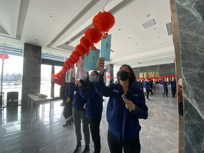 火紅的燈籠將現(xiàn)場點(diǎn)綴得分外喜慶,200多條內(nèi)容豐富、各式各樣的謎語展現(xiàn)在員工面前,燈謎涵蓋了公司產(chǎn)品謎、環(huán)保謎、物品謎、字謎等,既具娛樂性,又具知識性。員工們都爭先恐后的看謎面猜謎語,或仰目細(xì)看,或低頭深思,或相互討論。一番苦思冥想,一條條謎底被紛紛猜中,不一會兒兌獎處就排起了長龍。兌過獎的員工手里拿著獎品,臉上都洋溢著歡樂、喜悅的笑容。